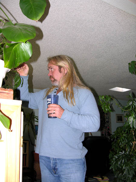 Chris checks out the condition of the many plants they have in their