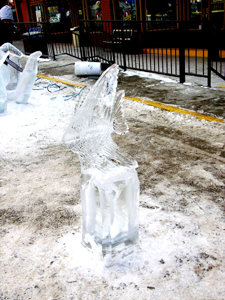 The theme for the ice sculpture was 'Under the Sea'. Here are sculptured fist.