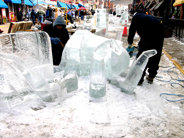 Here you see the artists sculpting an octopus. Look down the street at all the sculptures.
