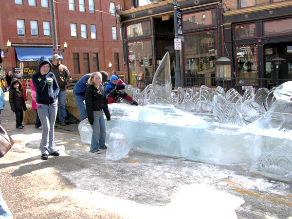 Wow! That's one big, cold shark! Maya and Lexi walking by - don't get too close.