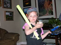 was decked out for playing softball. Lizzy was wearing her Easter dress