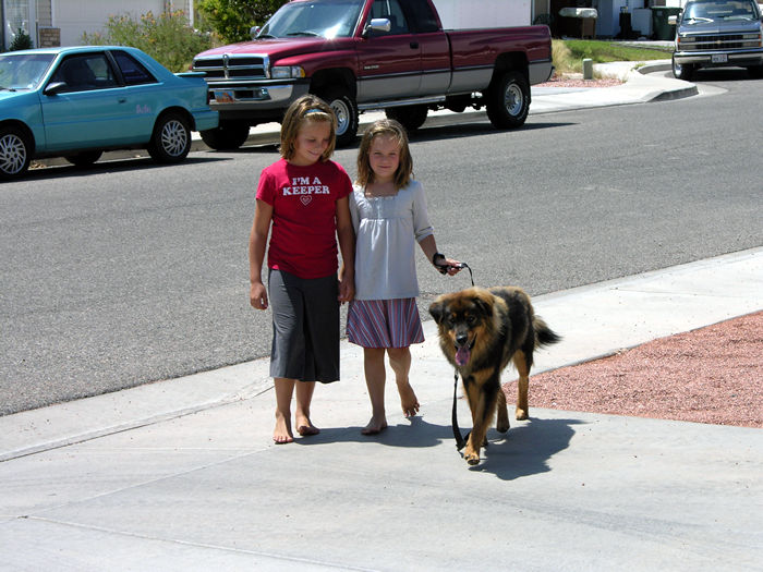 Lizzy and Sarah couldn't wait to take Kevin for a walk!
