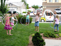 hoop. She keeps it going forever while jumping up and down, walking like a
