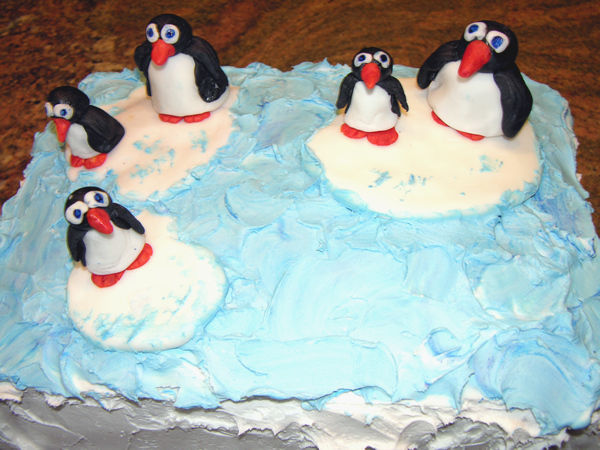 End result: penguins sitting on floating ice bergs