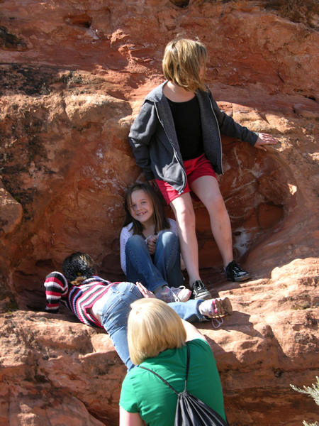 Mary gives Emma a boost up to where Sarah and Lizzy wait.