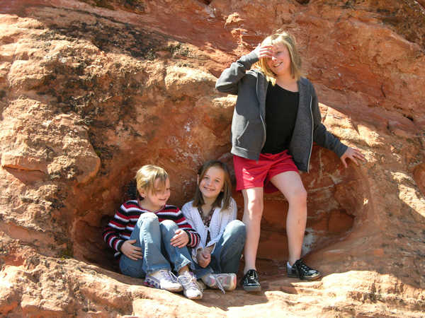 Emma, Sarah and Lizzy in a mini cave in the cliff.