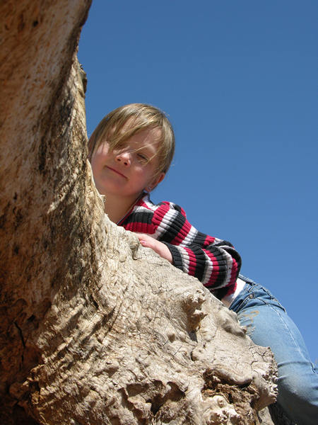 Emma looks really cumfy up there on that tree trunk!