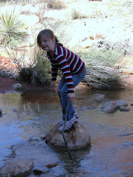 Emma crossing the stream. Everyone was so careful to stay dry on the way.