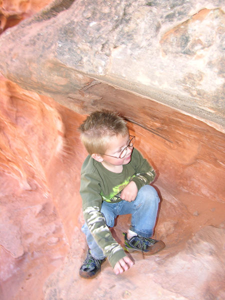 Isaac found it fun to climb up on the cliff as well. He found a pocket to sit in.