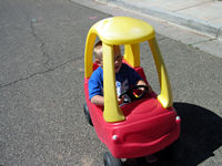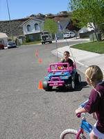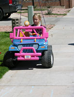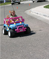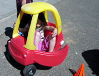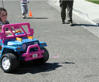 the battery powered Jeep. Finally, they raced in the Little Tykes foot powered