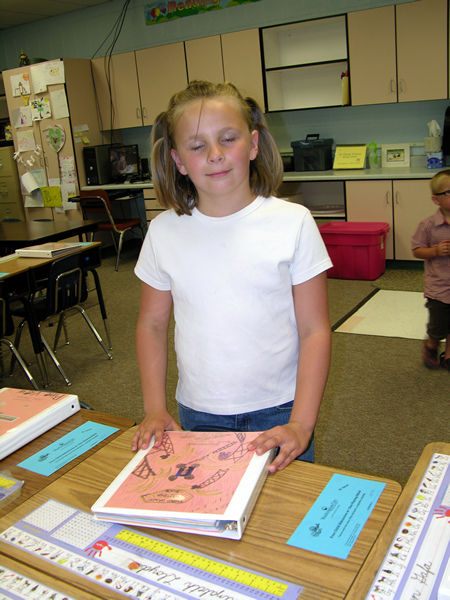 Lizzy had saved school work throughout the year in her notebook and was able to show the great progress she had made. She has learned to write in cursive and writes quite neatly.