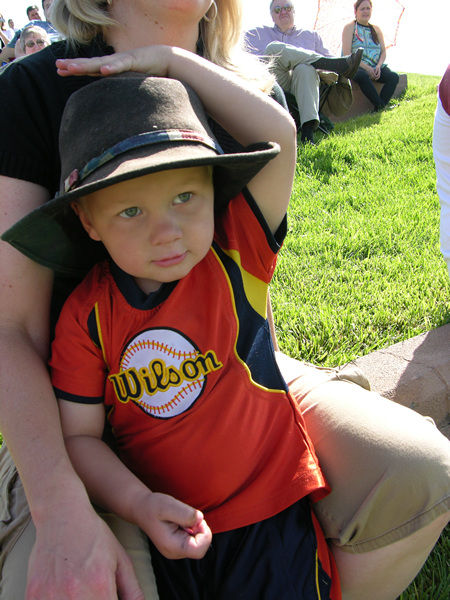 Isaac soon lost patience with sitting still, so borrowed Grandpa's hat and was taken on a few walks.