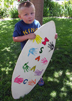 the kids each sanded, painted and coat them with polyurethane. The pictures