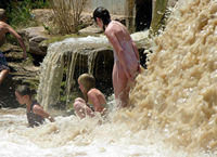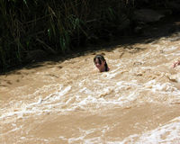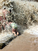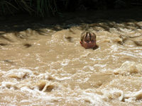 Once out, the force of the river puts them sliding down-river about 100 yards.