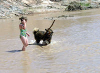 pools' on the river bank, playing with Kevin (family dog), collecting tadpoles,