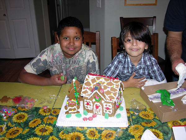 Mouse over faces to see Marlon and Nick. Their gingerbread house is looking good.
