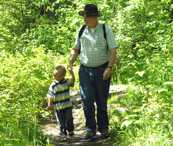 Isaac and John walking along the trail.