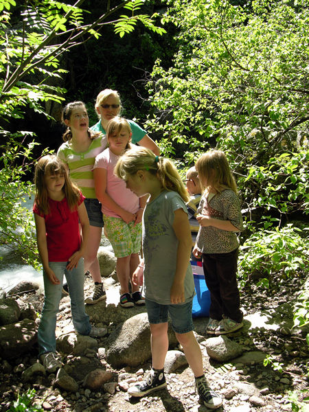 Group along the No Name Creek (Sarah, Maya, Mary, Lizzy, Lexi, Emma and Isaac just showing in back)