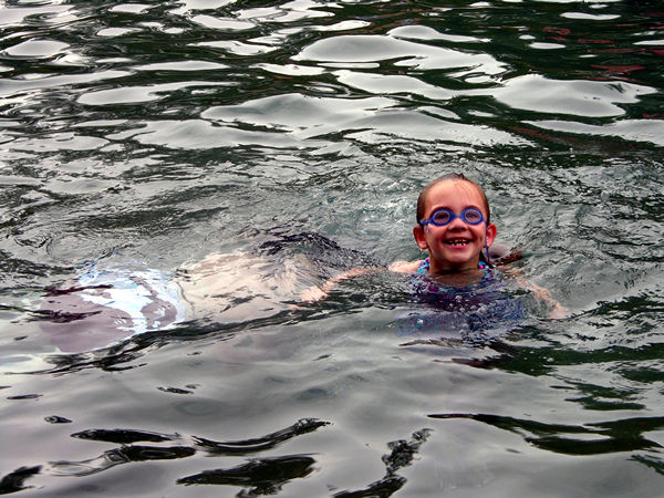 Big grin from Sarah in the 'Stinky Pool'. Oh, yes. They call it the 'Stinky Pool' because it smells of sulfur and is fed by a sulfur spring.