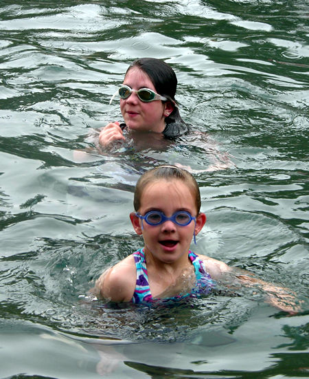 Sarah and Maya after surfacing from underwater swimming in 'Stinky Pool'.