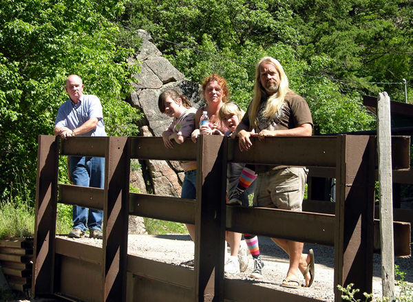 John, Maya, Jenn, Lexi, Chris on bridge over No Name Creek.