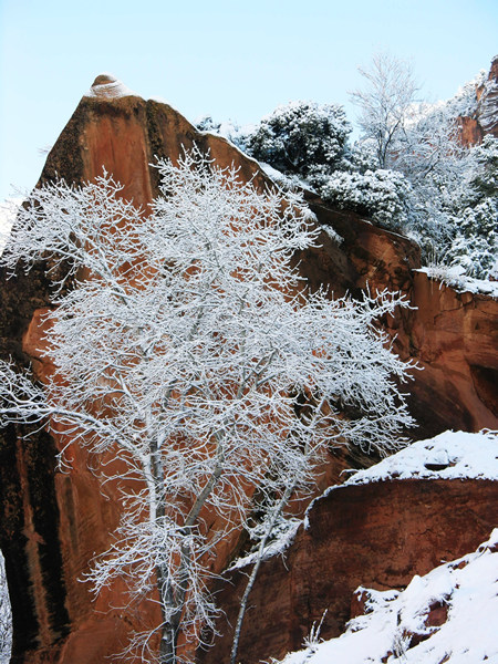 Snow was all along each branch, no matter how large or small.