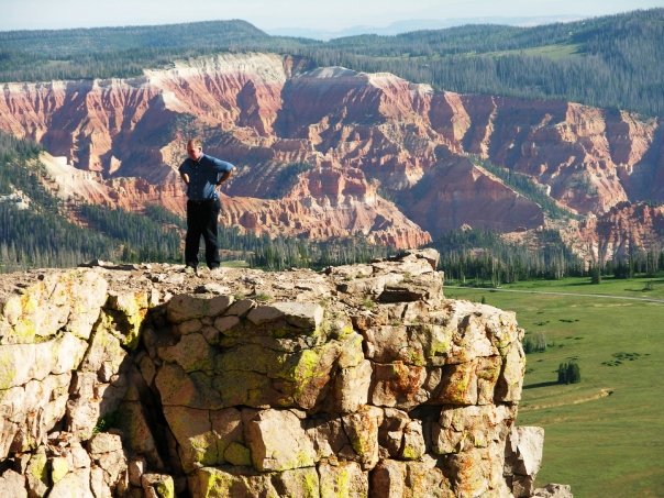 John climbed out on a clilff edge to get his picture taken with the beautiful red rock formations behind him.