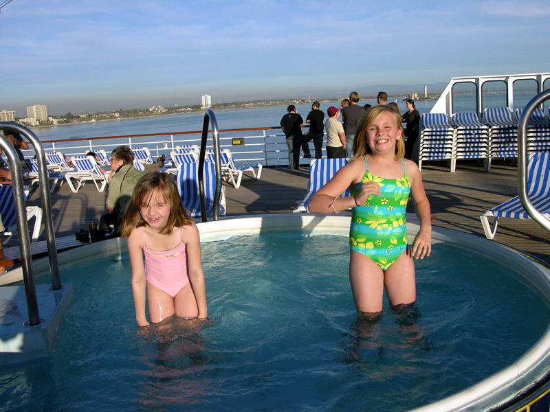 Sarah and Lizzy in pool aboard ship.
