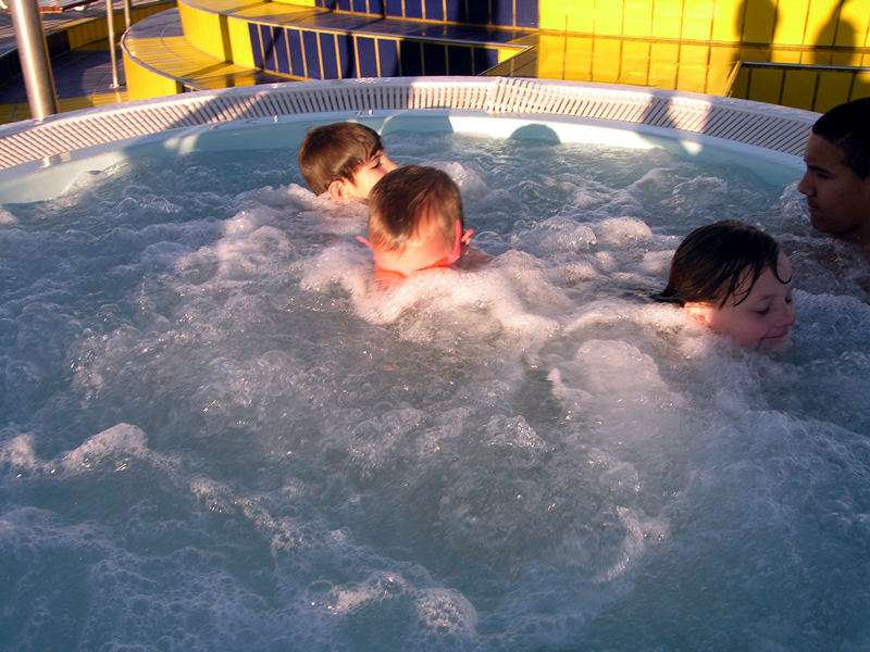 Isaac and Emma swimmin in the pool.