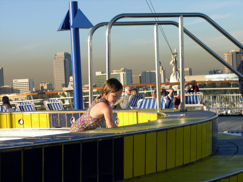 Emma playing in pool on deck.