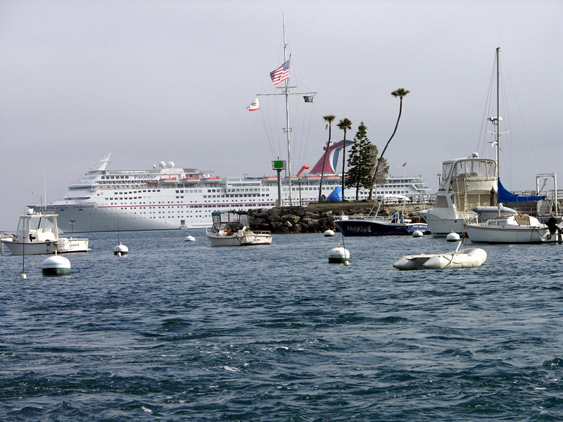 View of the Paradise through the harbor. It is much larger than anything else out there!