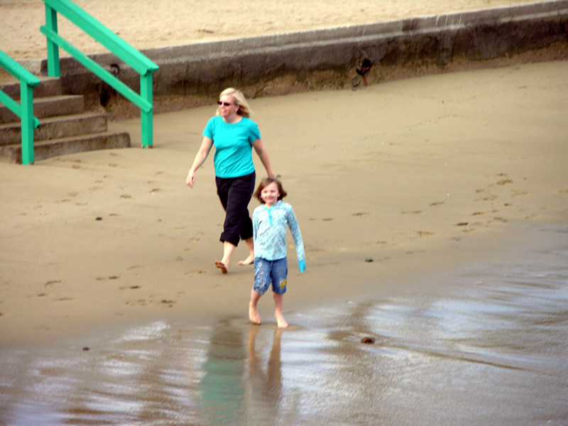 Mary and Emma playing on the beach on Catalina Island. Woo-hoo! Running on the beach is fun!