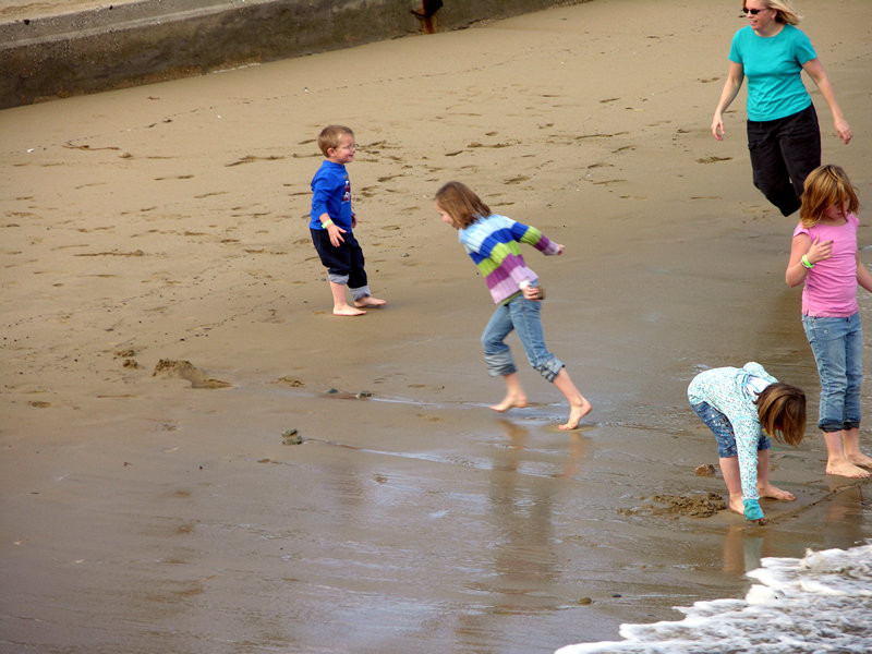 Isaac, Sarah, Emma and Lizzy play while Mary runs on the beach on Catalina Island.