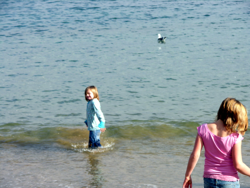 Emma and Lizzy playing in the cold, cold water on Catalina Island.