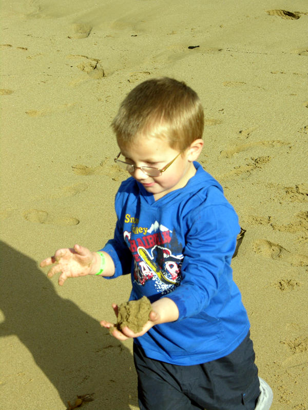 Isaac, moving sand from one spot to another. Where is the dump truck when you need it?