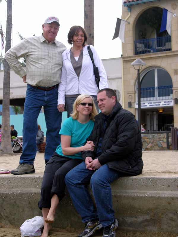 Mel and Susan standing behind Mary and Kelton at the beach on Catalina Island.