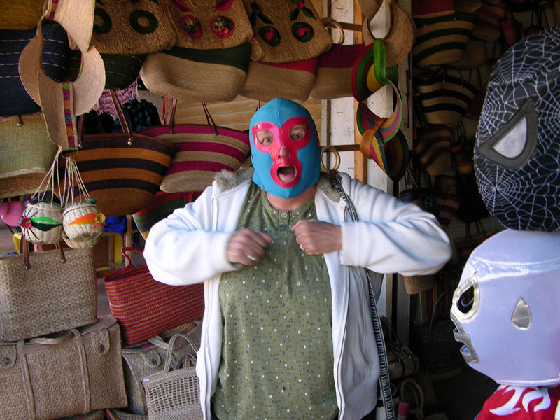 Ann doesn't look very much like a scary wrestler. She looks more like a scared wrestler.