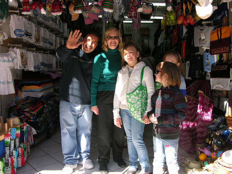 Mary, Lizzy, Emma and Sarah hiding behind Emma are wheeling and dealing for some souvenirs.