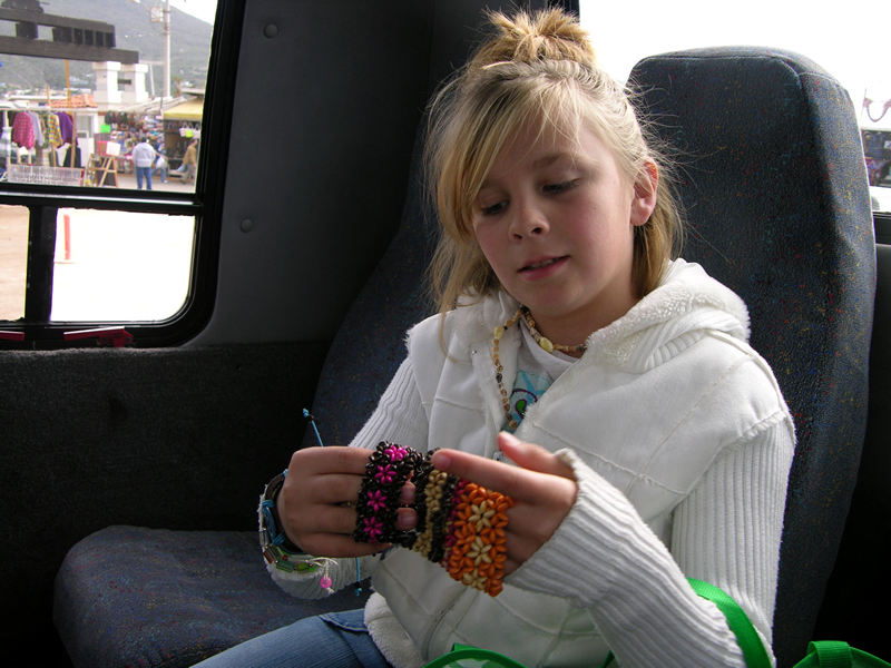 Lizzy studying her Mexican treasures on the way back to the ship.