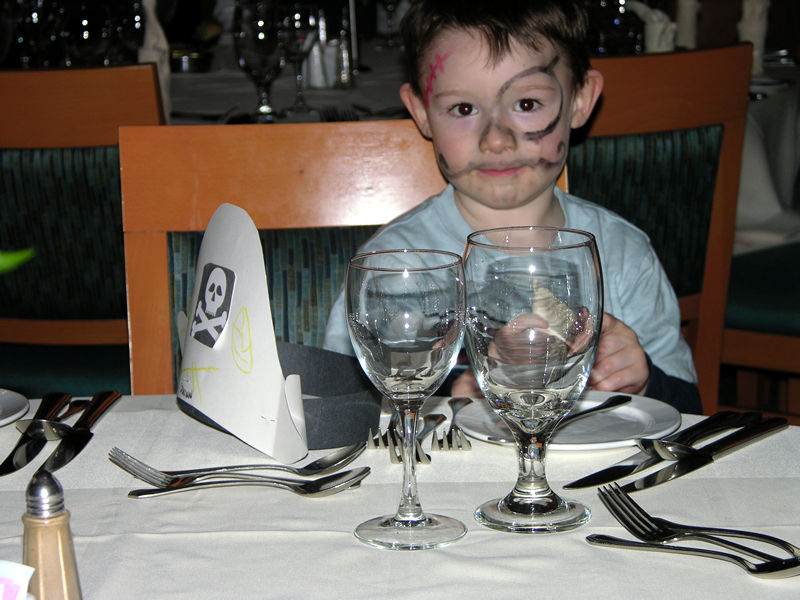 Looks like pirate Quin is taking time out from swashbuckling to eat dinner.