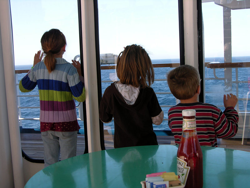 What's out there? More, more, and more ocean! Hey, if we breathe on the window, we can draw pictures!