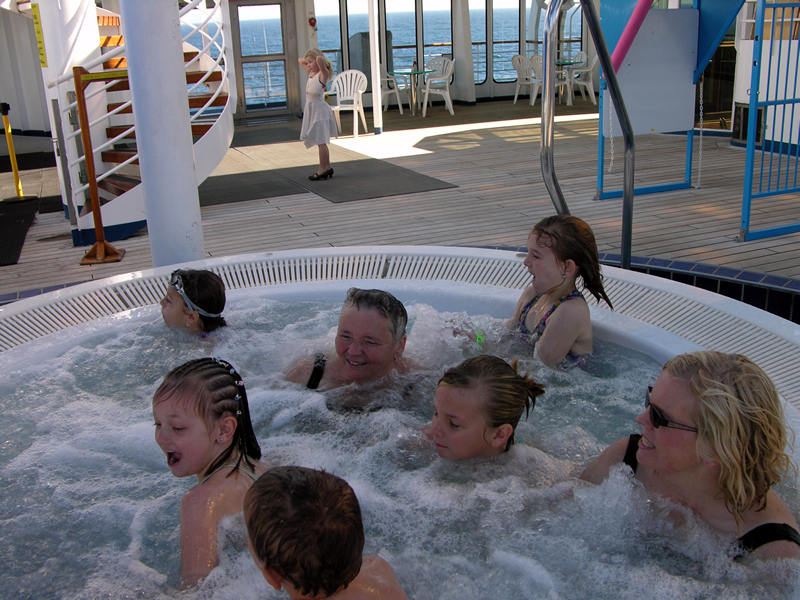 Isaac, Emma, Grandma, Lizzy, Sarah and Mary (plus another kid we do not know) enjoying the water.