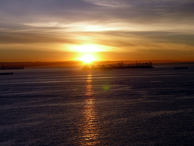 Sun commin' up, over oil islands. This was taken as we pulled into port on the last morning.