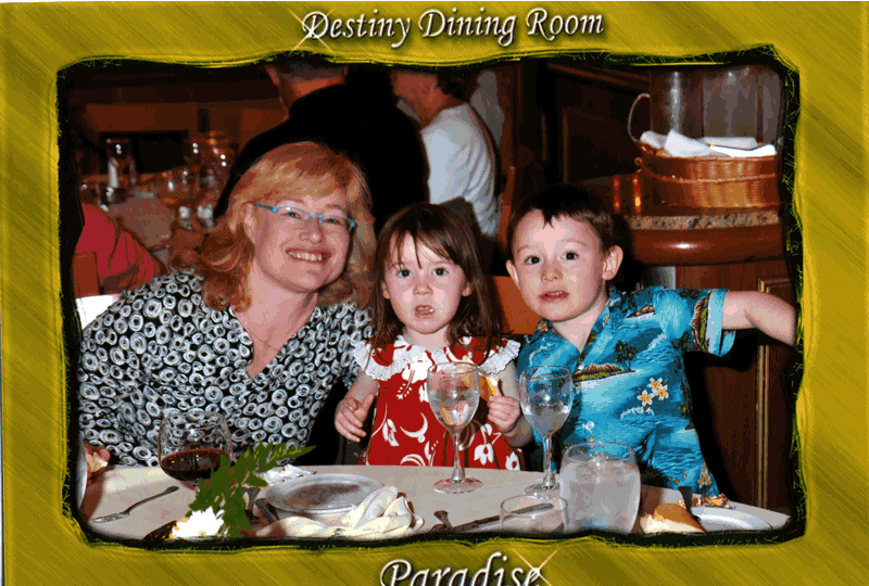 Amy, Rose and Quin enjoying their dinner. They were charmed by our waiter.