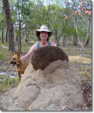 The lizard above surprised us by sauntering into the house one day. He's either a Tommy Round-head or a Northern Two-lined Dragon. I like the idea of living with Dragons.... We seldom see these lizards although they are more common upriver. This one is about 30cm (1') in length. A little digital magic shows him from two angles, but it's the same lizard. Even Fred the Frilled Neck Lizard reappeared, once near the house and once near our water tank, but no new pix of him. Instead here's a close up of that dragon: