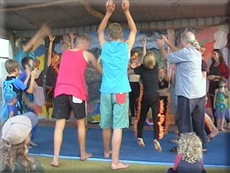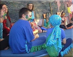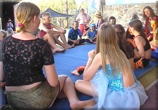 in a circle onstage with Circus North's Ian North and Jenny to focus on